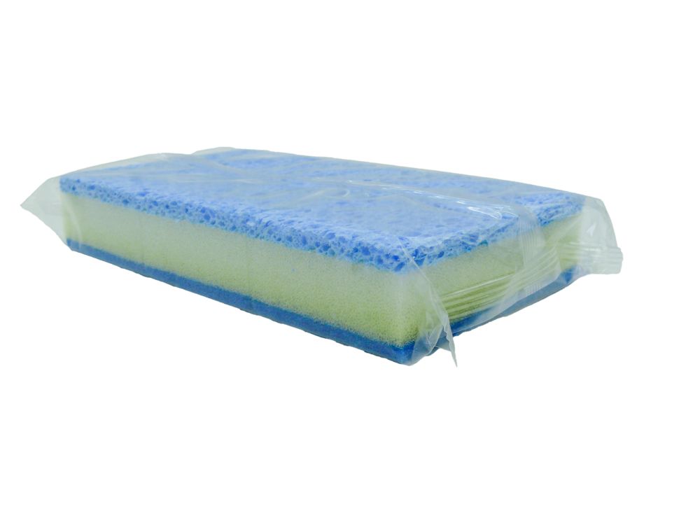 Трехслойная структура: Каждая губка состоит из трех функциональных слоев — целлюлозы, поролона (пенополиуретана) и абразивной фибры.