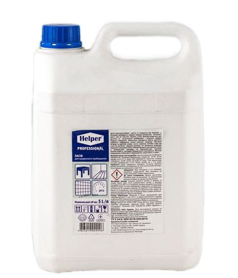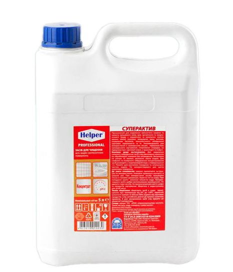 Бытовая химия фасуется в пластиковые бутылки, баклажки и канистры объемом от 1 до 5 литров. Среди чистящих средств выделяются узкоспециализированные товары для чистки ковров, сантехники, ламинированных поверхностей. Также Хэлпер производит моющую жидкость для уборки помещения после окончания ремонтных работ.