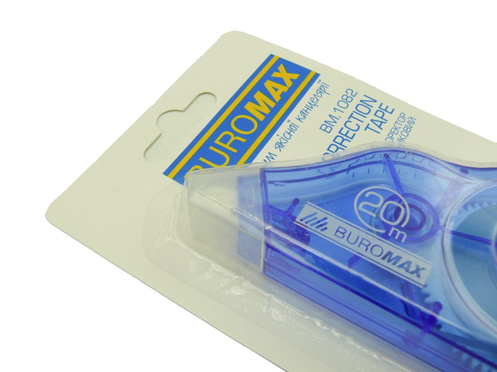 Корректор ленточный Buromax (5 мм х 20 м) — Идеальное исправление без лишнего ожидания! Ленточный корректор Buromax — это надежный и удобный инструмент для мгновенного исправления рукописного или печатного текста. Благодаря сухому слою покрытия, вы можете вносить правки сразу после нанесения, не дожидаясь высыхания, что значительно экономит время при работе с документами. Преимущества ленточного корректора Buromax: Экономичность: Внушительная длина ленты — 20 метров — обеспечивает длительный срок использования, заменяя несколько стандартных корректоров. Чистота и аккуратность: Корректирующий слой ложится ровно и плотно, полностью перекрывая текст. Не осыпается и не оставляет следов на ксерокопиях или при сканировании. Удобство использования: Эргономичный прозрачный корпус позволяет контролировать остаток ленты, а удобная форма обеспечивает точное нанесение линии шириной 5 мм (стандартная высота строки). Мгновенный результат: Поверх исправленного участка можно сразу писать любой ручкой (шариковой, гелевой или линером) — чернила не размазываются и ложатся четко. Безопасность: Не содержит растворителей и не имеет резкого запаха, что делает его безопасным для использования в школах, офисах и дома. Характеристики: Бренд: Buromax Тип: Ленточный корректор (роллер) Ширина ленты: 5 мм Длина ленты: 20 м Особенности: Сухое нанесение, прозрачный корпус