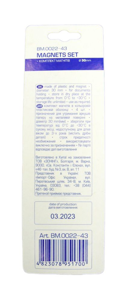 Магниты для доски 30мм 4 шт цветные Код: 16429-1