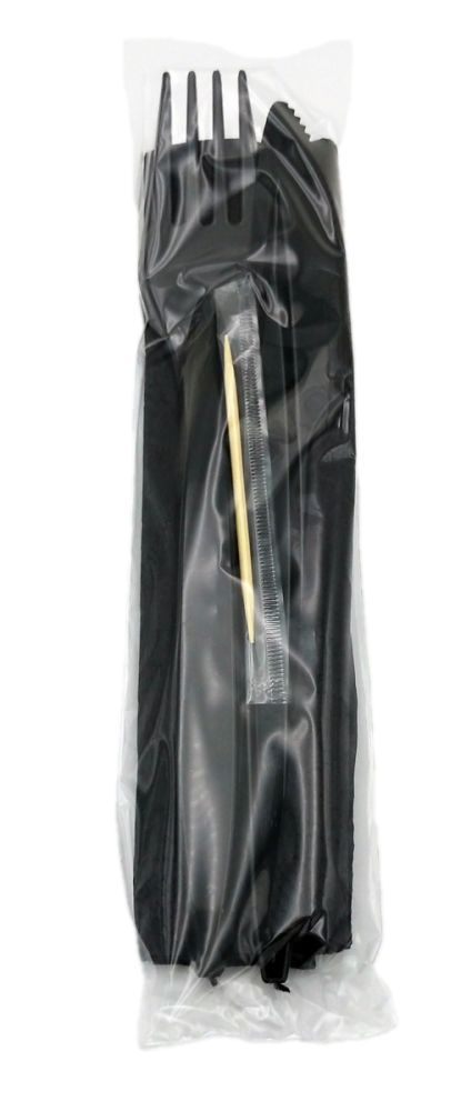Набор одноразовый чёрный премиум 4/1 (зубочистка, салфетка чёрная, вилка, нож).