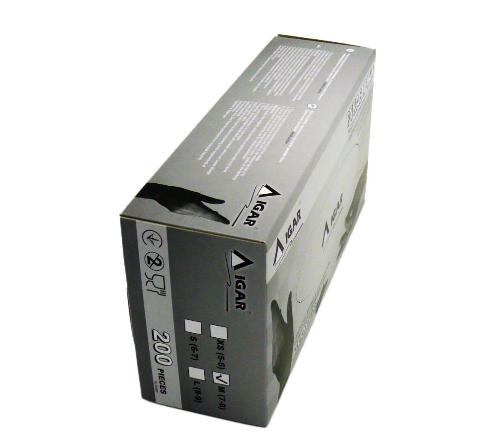 Черные нитриловые перчатки IGAR — легко, комфортно одеваются и принимают форму рук. Они гипоаллергенны, обладают высокой прочностью и элластичностью, имеют повышенную устойчивость к проколам, порезам и агрессивным химическим реагентам. Могут использоваться в различных сферах.
