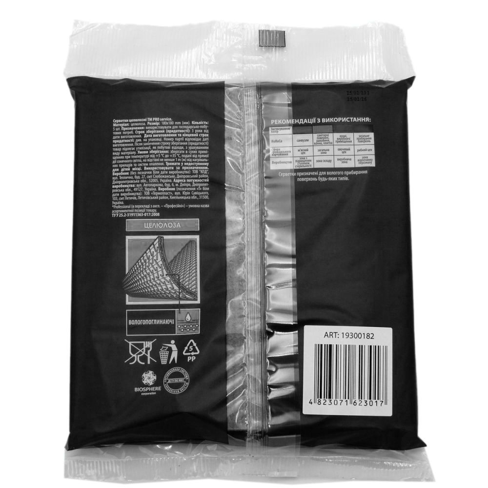 Целлюлозные салфетки PROservice используются для влажной уборки. Целлюлоза – натуральный материал, получаемый из древесины. Свойства салфеток из целлюлозы: гигиеничность, высокая впитываемость влаги, не оставляют разводов и ворсинок. Применение: общая уборка, санитарные поверхности, раковины, ванны, душевые кабины, плитка, уборка складской зоны и т.д.