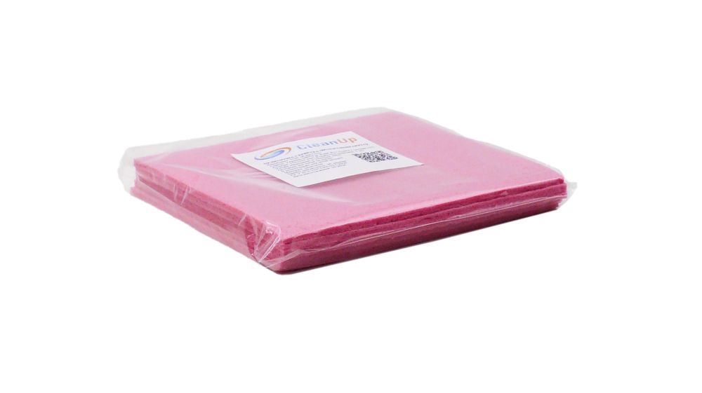 Стосовно форми випуску та упаковки, найчастіше віскозні серветки "Clean Up" продаються наборами (пачками), що містять декілька штук, наприклад, три або п'ять штук в одній упаковці. Вони можуть бути різних кольорів, таких як жовті або рожеві, що є зручним для кольорового кодування під час прибирання різних зон у приміщенні. Поширений розмір для таких серветок становить близько 30x30 см, хоча можливі й інші варіанти.